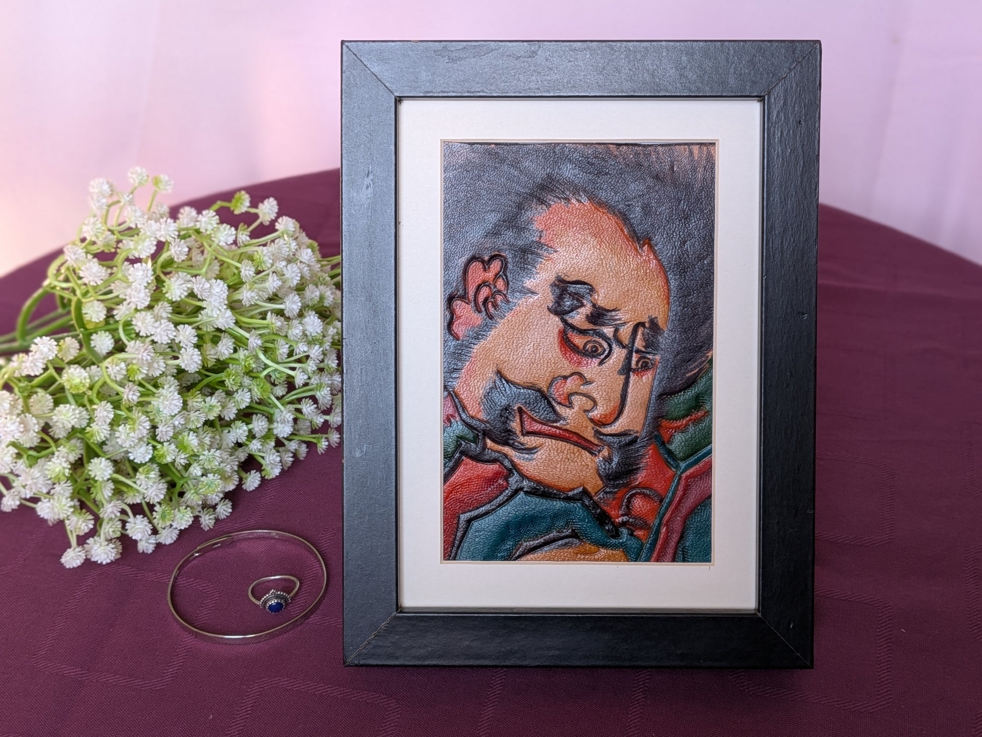 L'œuvre est vendue seule (sans cadre). Le cadre visible sur la photo est utilisé uniquement pour suggérer une idée de mise en valeur décorative. Son format permet un encadrement facile et standard.
