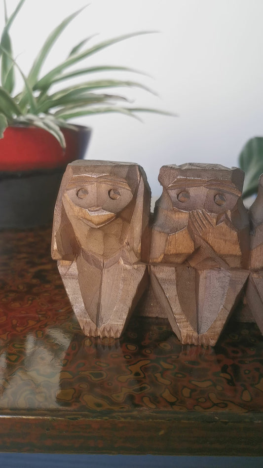 Les Trois Singes Sages – Figurine Okimono en Bois Ittobori – Sculpture Japonaise Authentique